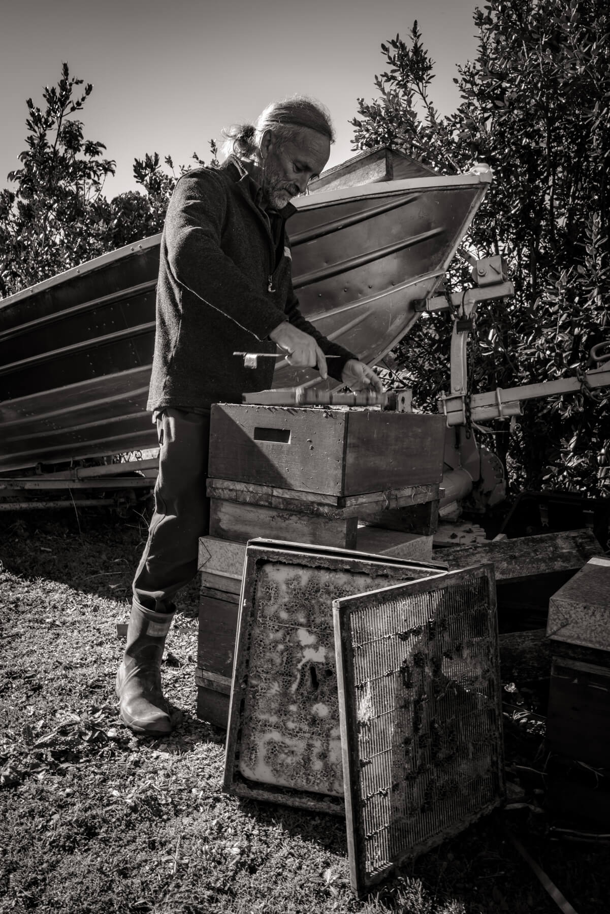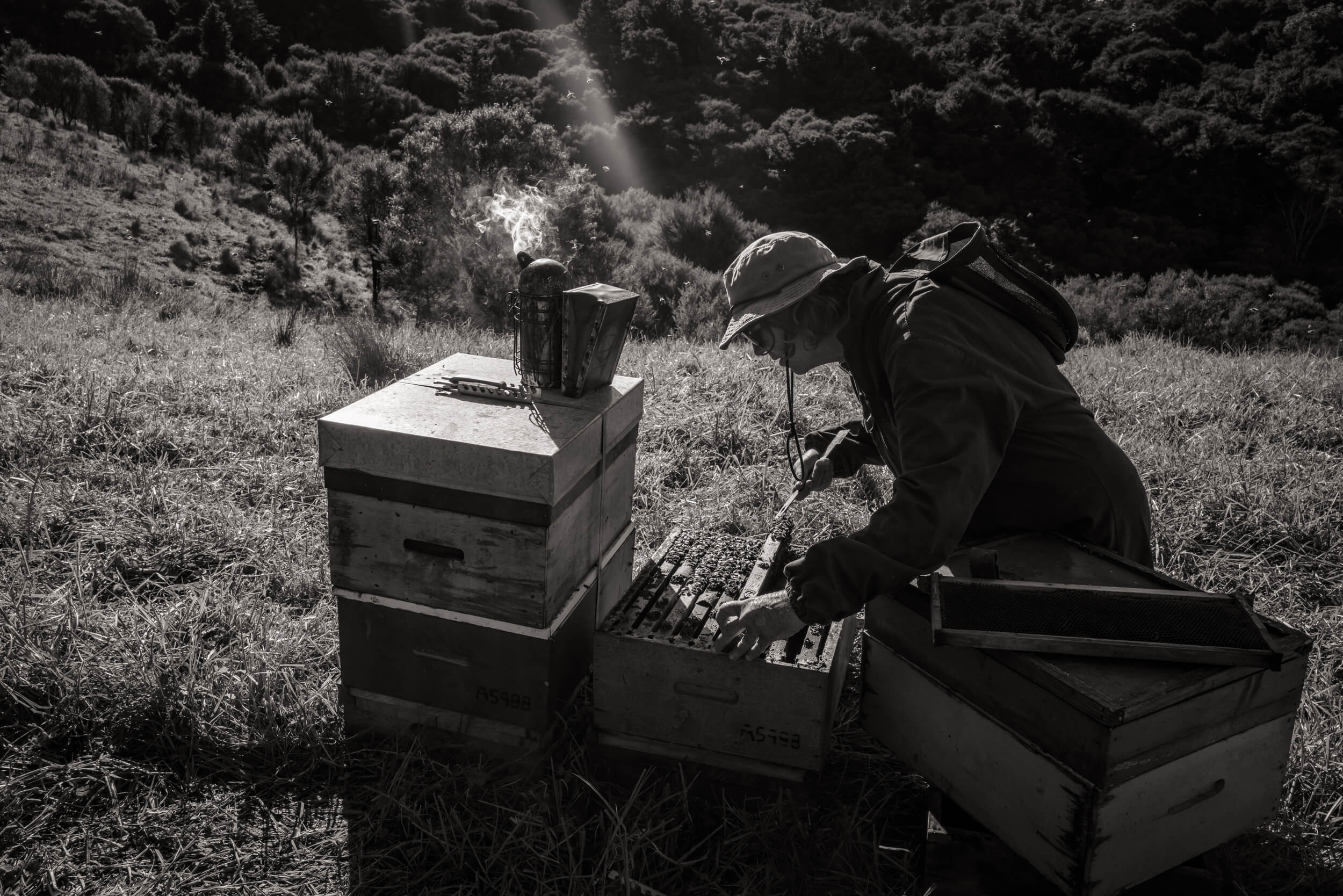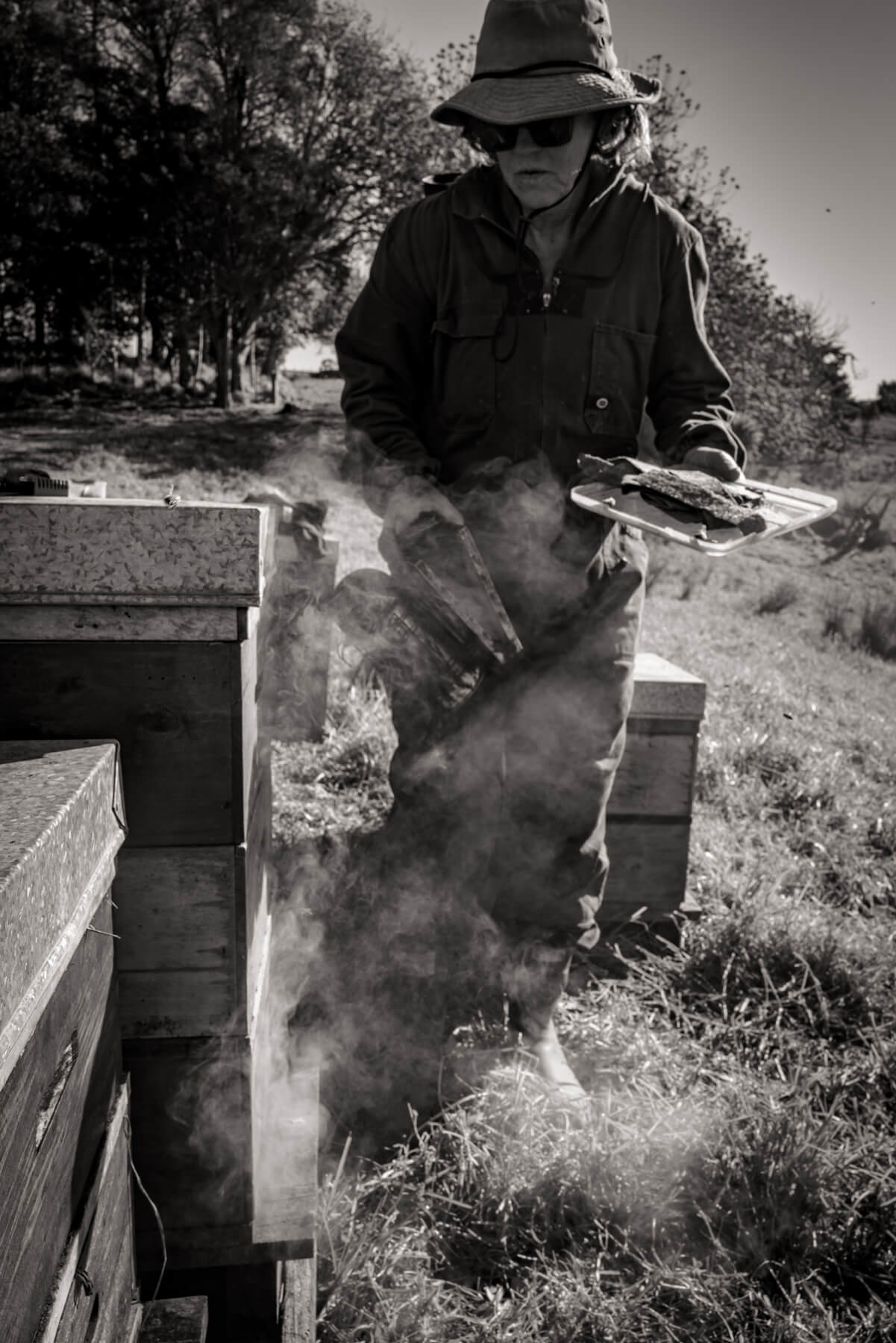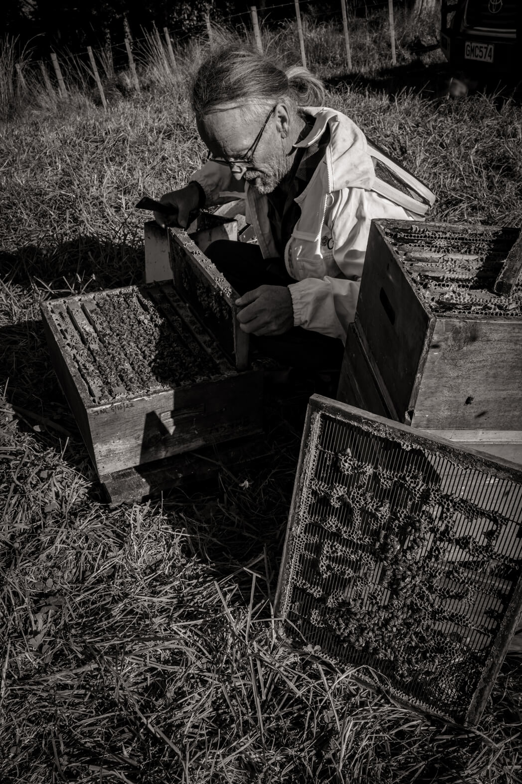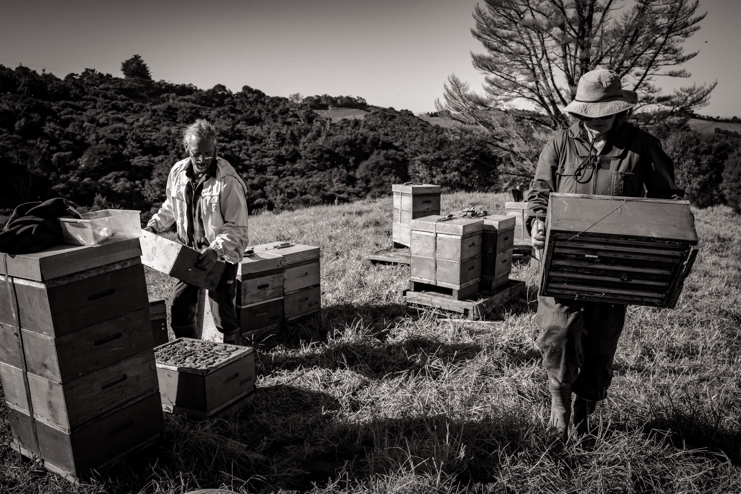 They manage many parts of the process themselves: queen breeding, harvesting, extraction, and bottling. They do not heat the honey; they extract and bottle it soon after the honey frames are capped. The honey is strained just twice.